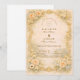 This luxurious wedding design features a soft antique ivory background framed by romantic blush roses, delicate greenery, and ornate baroque gold detailing. Inspired by classic European elegance, the composition feels refined, timeless, and opulent, with flowing florals and sculpted gold accents that create a graceful, romantic atmosphere. Perfect for couples drawn to vintage charm, old-world luxury, and an elevated, elegant wedding aesthetic.