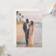This wedding invitation features a romantic beach scene with two individuals standing close together on the sandy shore, capturing an intimate moment against gentle ocean waves and palm trees. The color palette is soft and natural, blending warm beige tones of the sand with cool blues of the ocean and muted greens from the palm trees, creating a serene atmosphere. The design uses a realistic art technique to emphasize lifelike details and textures, evoking a sense of tranquility and connection. Perfect for couples seeking a peaceful and inviting vibe, this invitation celebrates love in a picturesque coastal setting.