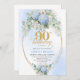 Invitation Romantic Blue Hydrangea Gold Frame 90th Birthday