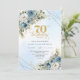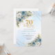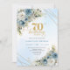 Invitation Romantic dusty blue florals gold frame 70 birthday