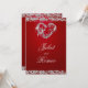 This romantic design features a crimson red background with glitter borders, a delicate silver scroll heart, script in elegant fonts. Perfect for the simple to most elegant wedding. Also available with different colored backgrounds for your wedding theme colors. (Glitter is simulated in the artwork). Designed to coordinate with the "Romantic Scroll Hearts & Glitter Wedding" Collection. To change details, click «Personalize». To move the text or change the text size, font, or color click «Click to customize further»