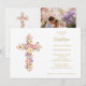 Invitation Romantic Pink Lilac Floral Cross Baptism