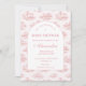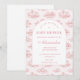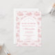 Celebrate a timeless and romantic baby shower with this elegant pink toile design, featuring delicate vintage countryside illustrations in soft blush tones. The refined arch layout creates a beautiful focal point for your event details, blending classic European charm with a modern, feminine aesthetic. Perfect for a chic, storybook-inspired celebration, this design feels both graceful and effortlessly sophisticated—ideal for creating a memorable and stylish gathering.