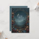 Transport your guests to a fairytale world with this enchanting landscape design. The artwork features a "window to the world" concept, framed by a heavy, lush archway of multi-colored blooms and verdant foliage intermixed with an antique gold border. Through this botanical gateway, a breathtaking vista is revealed, showcasing majestic peaks, a winding valley stream, and a dense pine forest bathed in the glow of a crescent celestial body. The moody, atmospheric lighting creates a sense of wonder and romance, perfect for a couple who loves the outdoors. This dreamy illustration is a flawless choice for a destination wedding in a national park or a rustic woodland ceremony. You might also select this scenic aesthetic for a twilight engagement party, a sophisticated sweet sixteen with a fantasy theme, or a milestone anniversary celebration. This picturesque landscape border is also perfectly suitable for travel agency promotional flyers, luxury glamping retreat brochures, or fantasy book launch invites.