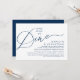 Annoncez et partagez votre bonheur éternel avec style grâce à notre carte d'invitation de cérémonie d'élopement de mariage au design moderne et magnifique avec un thème bleu marine (After we do we dine). Elle est idéale pour les couples qui ont décidé de célébrer leur plus beau jour. Avec son design sophistiqué et ludique, cette invitation est sûre de donner le ton pour un événement inoubliable. La carte d'invitation présente un thème de design de script moderne et minimaliste, ajoutant une touche d'élégance intemporelle à votre célébration. Conçue par TeeshaDerrick