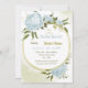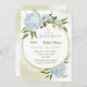 Belle invitation à la douche botanique nuptiale avec fleurs bleues romantiques avec quelques feuilles verts et quelques fleurs dorées en cercle.Les détails de la parties scintillant dorée sont simulés. Il convient aussi bien aux invitations de douche nuptiale qu'aux de baby shower. pour plus de personnalisation (changer la police ou sa couleur ou changer la disposition ) cliquez sur personnaliser le défilement vers le bas puis cliquez sur (Cliquez pour customiser plus loin). POUR PLUS DE PRODUITS CORRESPONDANTS cliquez sur la collection ci-dessus ou contactez-moi.