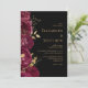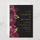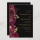 Ce faire-part de mariage floral romantique est orné d'une bordure de fleurs bordeaux agrémentée d'un feuillage en faux feuille d'or. Les noms du couple apparaissent dans la police serif de couleur or classique, avec le texte restant en italique, sur un arrière - plan noir.