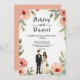 Cette élégante faire-part de mariage florale aquarelle est parfaite pour une mariage moderne. Le design romantique présente un cadre floral aquarelle élégant avec une illustration de mariée et de mariée et de calligraphie noire sur un arrière - plan blanc.