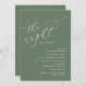 Donnez le ton pour une soirée inoubliable avec notre carte d'invitation "La nuit avant". Embrassez l'élégance moderne lorsque vous, invitations, aimez ceux qui vous rejoignent pour une célébration romantique pré-mariage mémorable. Avec un design et un script épurés, dans un schéma vert sauge de forêt, cette invitation promet une soirée d'anticipation et de joie.