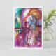Scène du balcon de la tragédie Roméo et Juliette de William Shakespeare. Peinture originale contemporaine à l'aquarelle avec feuille d'or, d'argent et couleurs iridescentes en violet vif, rose, vert, jaune orange, sarcelle. Peinture de Bulgan Lumini (c).