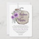 Aquarelle rondelle et roses violets foncés ont l'air si joli avec les sprigs d'eucalyptus argenté sur ce faire-part de mariage légèrement rustique. Parfait pour un mariage d'hiver violet et argent avec des cônes de pin boisé et d'élégantes vignes argentées qui transportent vers le dos argenté avec motif à feuilles à l'envers.