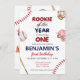 Invitation Rookie baseball rouge bleu 1er anniversaire