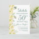 Rose blanche Flora Surprise Invitation 50e anniversaire. Le minimaliste design féminin moderne présente un charmant mélange de roses blanches et de verdure luxuriante. Carte invitation florale simple, parfaite pour une fête d'anniversaire de surprise féminine élégante. Vous pouvez changer l'âge pour répondre à vos besoins.
