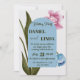 Ce faire-part de mariage est entouré de fleurs d'aquarelle.L'arrière - plan est blanc, mettant en valeur les fleurs roses et bleues vives avec des feuilles verts, lui donnant un look frais et élégant.Parfait pour un mariage de printemps ou de jardin.