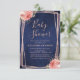 Aquarelle géométrique bleu marine et or Rose Floral Flowers Metallic Foil Bridal Shower Invitation pour la maman (maman ou mère) à être. C'est la parfaite Invitation Baby shower pour un Baby shower élégant et moderne pour un Garçon ou une Fille. Veuillez contacter le concepteur pour les articles customisés correspondants.