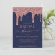 Chic Navy Blue et Rose Gold Sparkle Parties scintillant Drips Bridal Shower Invitation avec des gouttes de fausse parties scintillant sur un arrière - plan bleu marine classe. Parfait pour votre événement de luxe. Veuillez nous contacter à cedarandstring@gmail.com si vous avez besoin d'aide pour la conception ou les produits correspondants.
