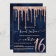 Invitation Rose bleu marine Parties scintillant or gouttes Sw
