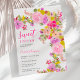 Jolie, girly Bohemian rose roses, printemps fleur sauvage été Sweet 16 anniversaire fête avec joli pastel rose rose rousse roses, fleurs de pays sauvage en lavande de boho, pêche, corail, rouge, feuilles verts, foune et plus, avec une typographie de script brossé sur un élégant éditable arrière - plan blanc.