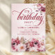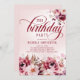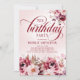 Invitez vos proches à célébrer un événement spécial avec cette élégante invitation d'anniversaire florale. Caractérisé par des tons rose pâle et crème accentués de fleurs aquarelles en burgundy riche et mauve, ce design allie une beauté intemporelle à une sophistication moderne. La calligraphie élégante et la typographie claire mettent en valeur les détails de la célébration, ce qui la rend parfaite pour les anniversaires marquants tels que les 50e, 60e, 70e, 75e ou 80e. Un choix magnifique pour les rassemblements formels, les brunchs ou les soirées.