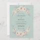 Ce design présente un fond serein vert mousse de mer orné d'illustrations délicates à l'aquarelle. Des roses crème douces et des fleurs de pêcher sont nichées parmi l'eucalyptus bleu poussiéreux et le feuillage argenté. La palette de couleurs éthérée crée une ambiance paisible et romantique parfaite pour un événement printanier ou estival. Des éléments botaniques élégants s'enroulent autour du centre pour créer une esthétique gracieuse et sophistiquée.