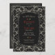 Ces invitations de mariage de 5" x 7" présentent un style gothique avec du papier patiné en faux dentelle noir et os et des roses rouges avec l'introduction, "Avec leurs familles, s'il vous plaît rejoignez", ainsi que des espaces réservés pour les prénoms du couple mariage, la date, l'heure, le lieu, l'adresse du lieu avec le message en bas, "réception à suivre."