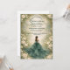 Ce design élégant de quinceañera présente un fond aquarelle vert émeraude doux encadré de roses ivoire romantiques, de verdure délicate et de subtils accents dorés, avec une illustration de robe gracieuse créant une atmosphère de jardin enchanté et raffiné. La riche palette verte associée aux florales classiques donne au design une sensation luxueuse et pourtant jeune, parfaite pour une célébration de quinceañera intemporelle avec une esthétique romantique et inspirée de la nature.