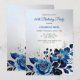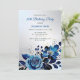 Faites honneur à une femme spéciale avec cette élégante et féminine invitation à la fête d'anniversaire. Ce design présente une fleur rose bleu marine aquarelle avec des papillons et des parties scintillant dorées sur un arrière - plan argenté. Tous les textes sont modifiables. Objets correspondants disponibles en magasin !