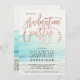 soirée de remise des diplômes de photographie de plage de typographie d'or rose. Une invitation moderne à la remise des diplômes avec cette brosse en or rose moderne, simple, élégant et chic en lettrage de typographie sur un arrière - plan de photographie de plage. Parfait pour une grande fête simple, élégante et moderne.