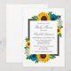 Le design présente d'élégants tournesols, des roses et des marguerites aux couleurs jaune doré, turquoise et blanc. Le design comporte également un cadre gris charbon de bois. Vous pouvez modifier la couleur arrière - plan sur l'avant et l'arrière en fonction de la couleur de votre choix ou laisser les deux sur le blanc.