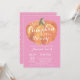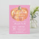 Carte d'invitation de baby shower d'automne de citrouille de fille avec l'arrière - plan rose. Pour davantage de personnalisation, cliquez sur svp la "personnaliser il" bouton et utilisez notre outil de conception pour modifier ce modèle.