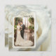 Une invitation romantique à la fête du 25e anniversaire du mariage avec votre propre photo de mariage (ou autre) encadrée par un motif tourbillonnant d'argent sur un arrière - plan rose blanc ivoire. Personnalisable pour toute autre occasion romantique. Cette invitation fait partie d'une collection de mariages.