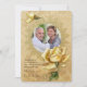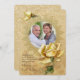 Invitation élégante pour le cinquantième anniversaire de mariage sur damassé floral or riche avec une bordure de photo à accent doré. Belle rose dorée en dessous. Téléchargez votre photo pour remplacer le modèle de photo. Personnalisez le recto et le verso de l'invitation avec les informations de votre fête. Une invitation magnifiquement détaillée pour refléter l'importance de cette date spéciale.