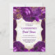 De belles fleurs florales roses violettes ont un faux délicat filigree or et des feuilles entrelacés sur un arrière - plan profond couleur lapis qui a une forme de pétoncle blanc incrusté avec faux or sur lequel votre libellé personnalisé apparaît. Ce design chic et élégant est idéal pour une douche nuptiale "violet, blanc et or" ou "à thème fleuri rose", une fête d'anniversaire botanique ou encore un événement d'affaires de printemps. Personnalisez le libellé pour vous assurer qu'il convient à votre célébration spéciale.