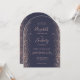 Cet élégant faire-part de mariage moderne en arc présente des bordures latérales roses en faux parties scintillant or. Le texte personnalisable combine écriture rose rose, cuivre et italique sur un arrière - plan bleu foncé. L'envers est assorti d'une parties scintillant en or bleu foncé et rose.