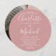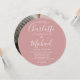Doté d'élégants noms de style signature et de votre photo spéciale, ce faire-part de mariage circulaire élégant peut être personnalisé avec vos détails mariages en lettrage blanc chic sur un arrière - plan rose poussiéreux. Conçu par Thisisnotme©