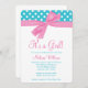 Invitations bleues roses et turquoises mignonnes de baby shower. Comporter le pois turquoise et un graphique rose girly d'arc. Perfectionnez pour un baby shower de petite fille. À la mode et mignon. Personnalisez facilement pour votre partie ! Les conceptions sont les illustrations/dessins imprimés par appartement - RUBAN NON RÉEL.