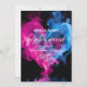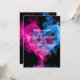 Un thème de fumée Baby Genre Reveal modèle de l'invitation de la fête. Sur un arrière - plan noir, la fumée bleue et rose vif forme un coeur d'amour autour du texte blanc. Personnalisez-vous en éditant l'invitation numérique ou imprimée avec les détails de votre événement.