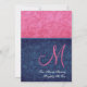 Cette conception avec sa damassé de rose et de bleu marine fait un faire-part de mariage élégant, et est actuellement décrite sur un papier métallique hued de glace de la meilleure qualité qui donne à votre invitation un miroitement et un éclat chauds. Vous pouvez expérimenter avec différents types de papier pour obtenir juste le regard que vous voulez. Si vous voulez une finition brillante (qui est seulement appliquée à la partie antérieure de votre invitation) choisissez les papiers de toile, de base ou métalliques. Si vous voulez une finition mate, choisissez tachetée, senti, ou réutilisée. Cette invitation vient avec une enveloppe classée par A7.