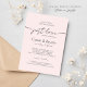 Rose & Noir Vive Love Modern Script Faire-part de mariage. Cette élégante invitation de mariage présente un script et une typographie modernes en rose et noir foncé, avec un simple monogramme sur le dos.