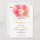 Invitation Rose et or Baptême à l'aquarelle