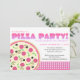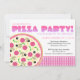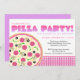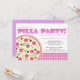 Notre invitation rose et pourpre de partie de pizza rendra chacun affamé pour un tarte de pizza ! Les caractéristiques de conception une grande pizza suprême à côté d'une nappe checkered rose et pourpre et des mots "partie de pizza !"