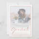 Simple script rose or moderne photo Graduation party invitation avec une élégante typographie or rose et cadre géométrique or rose.