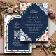 Invitation Rose Floral Navy Blue Lace QR Code Musulman Mariag