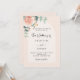 Un arrière - plan d'or rose roux avec une arche. Décoré d'or rose et de fleurs roses, de fleurs roses et de verdure d'eucalyptus vert aquarelle. Personnalisez et ajoutez vos noms et détails. Dos : or rose couleur arrière - plan.