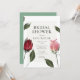 Une invitation chic et moderne à la douche nuptiale avec deux beaux roses assis en face d'un panneau arrière teinté tenant vos détails de douche nuptiale ensemble dans un texte élégant. Conçu par Thisisnotme©
