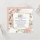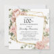 Honorez une personne spéciale avec cette élégante invitation de 100e anniversaire. Des roses roses poussiéreuses nichées dans un feuillage vert foncé créent un cadre botanique carré.