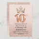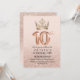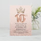 Invitation minimaliste moderne 10ème anniversaire avec police rose et calligraphie moderne. Couronne élégante avec saphirs élégants et pierres précieuses en aquarelle sur un arrière - plan rose.