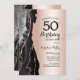 Gate d'or noir et rose 50e anniversaire invitation de fête. Design élégant et moderne avec arrière - plan de géométrie en pierre de pierre en marbre, faux or rose de parties scintillant et police de script de typographie. Carte invitation branchée parfaite pour une célébration anniversaire féminine élégante. Invitations Zazzle imprimées ou téléchargement instantané modèle imprimable numérique.