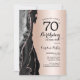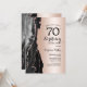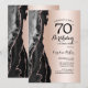 Gate d'or noir et rose 70e anniversaire invitation de fête. Design élégant et moderne avec arrière - plan de géométrie en pierre de pierre en marbre, faux or rose de parties scintillant et police de script de typographie. Carte invitation branchée parfaite pour une célébration anniversaire féminine élégante. Invitations Zazzle imprimées ou téléchargement instantané modèle imprimable numérique.