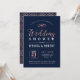 Cette invitation de fête de mariage élégante présente une belle typographie rose gold sur fond marine. Vous pouvez personnaliser la couleur de fond.